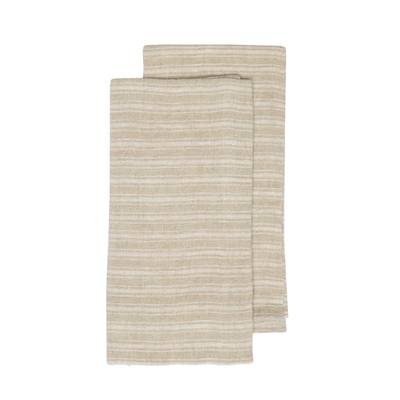 Boat Stripe Linen Kitchen Towels Natural & White, Set Of 2