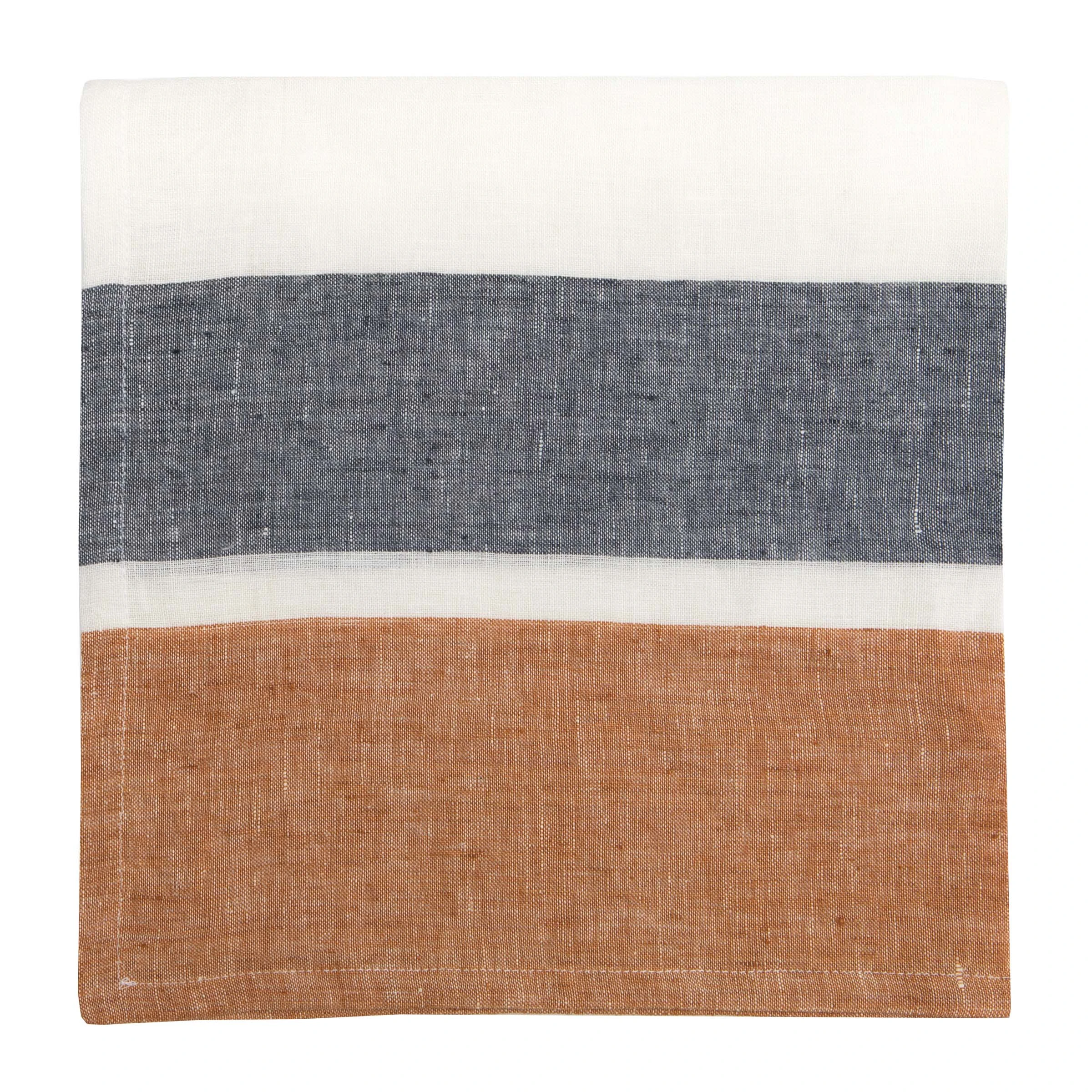 Visually intriguing without being flashy or distracting, these Bold Stripe napkins make an artistic complement to any table setting. Think of them as pieces of art which you can also wipe your mouth with — without offending any art-lovers. So whether you’re enjoying a sunny picnic outdoors or hosting a large formal dinner at home, you’ll find these linens work in a variety of contexts, with colors that prove softly uplifting. These linens also pair nicely with our Seagrass placemats
