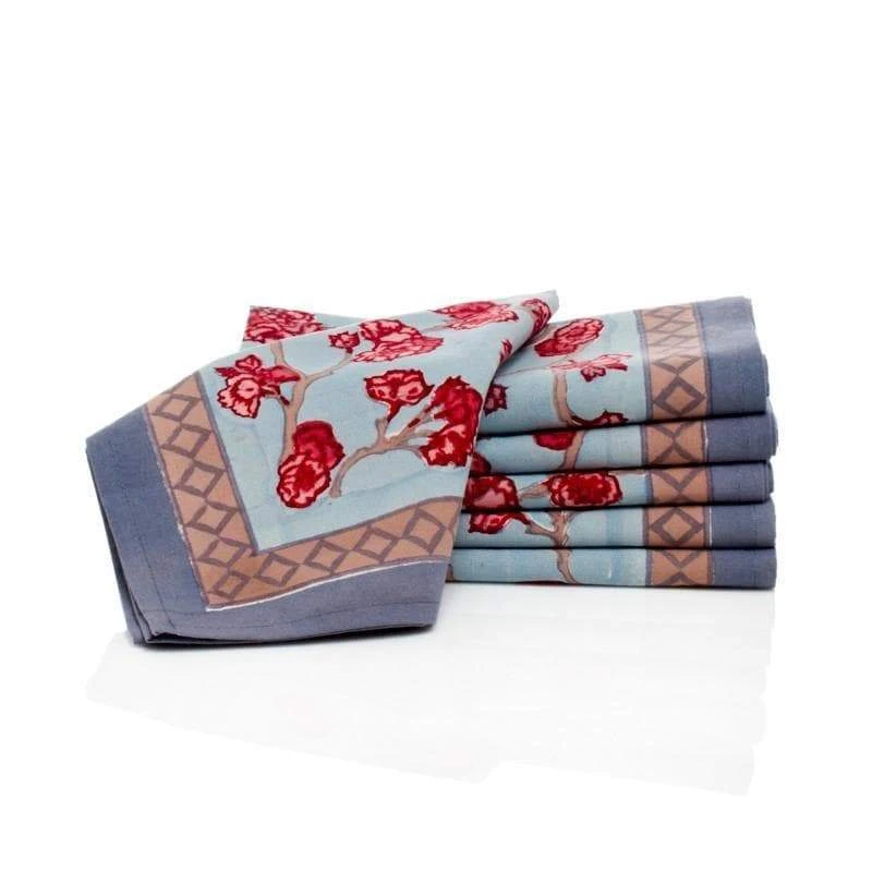 - Set of six colorful napkins, each measuring a generous 19-inches square.