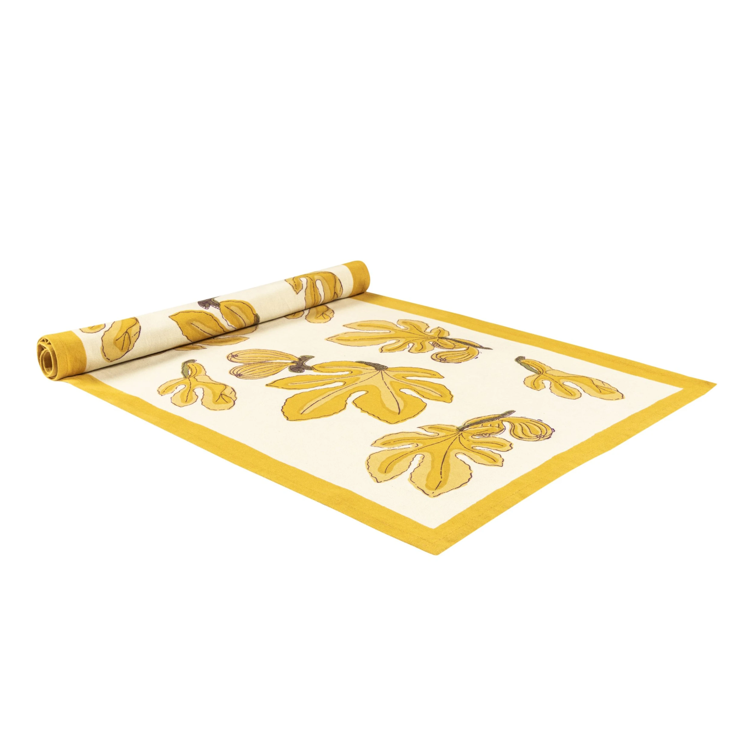 With rich, invigorating colors, this pattern showcases citrine figs and leaves against an ivory backdrop. This Fig Citrine Collection makes an excellent table setting, whether for special occasions or everyday entertaining. This French linen — available in round, square, and rectangle shapes — has been carefully handprinted by skilled artisans using a time-honored technique, resulting in a singular piece of craftsmanship.