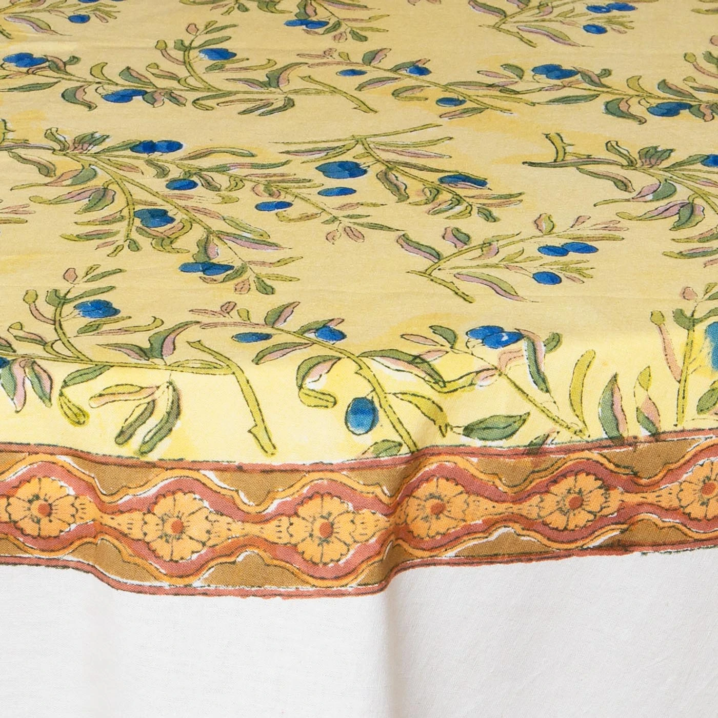An ancient symbol of peace and prosperity, the olive tree in this tablecloth evokes the relaxed pace of the Provençal countryside along with a subdued sense of European elegance. With a palette of calm brown, cream, khaki, and sienna tones, this piece makes an excellent backdrop throughout the year, whether you’re enjoying a quiet dinner, a special occasion, or a family fête. This French linen has been carefully handprinted by skilled artisans using a time-honored technique, resulting in a singular piece of craftsmanship.