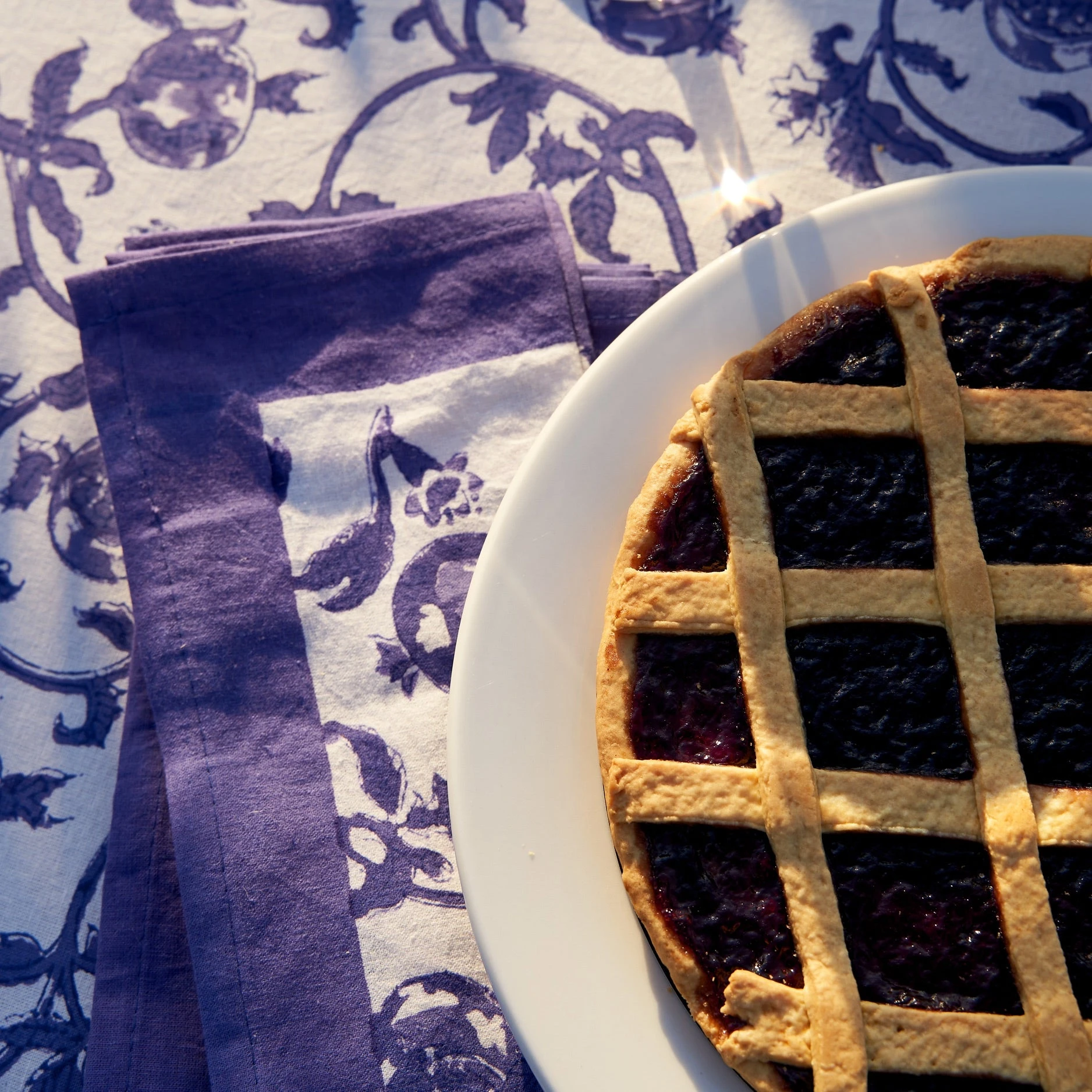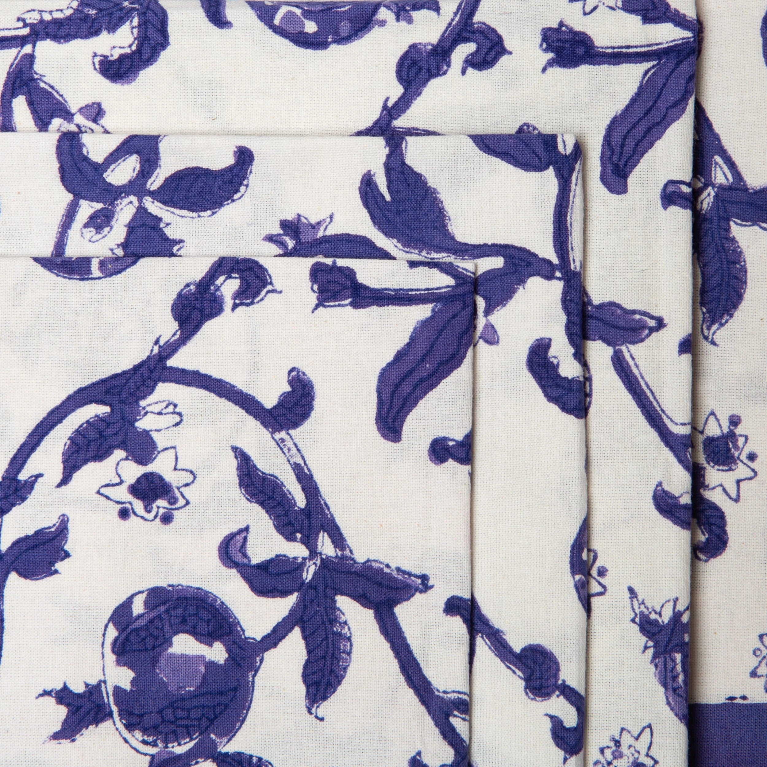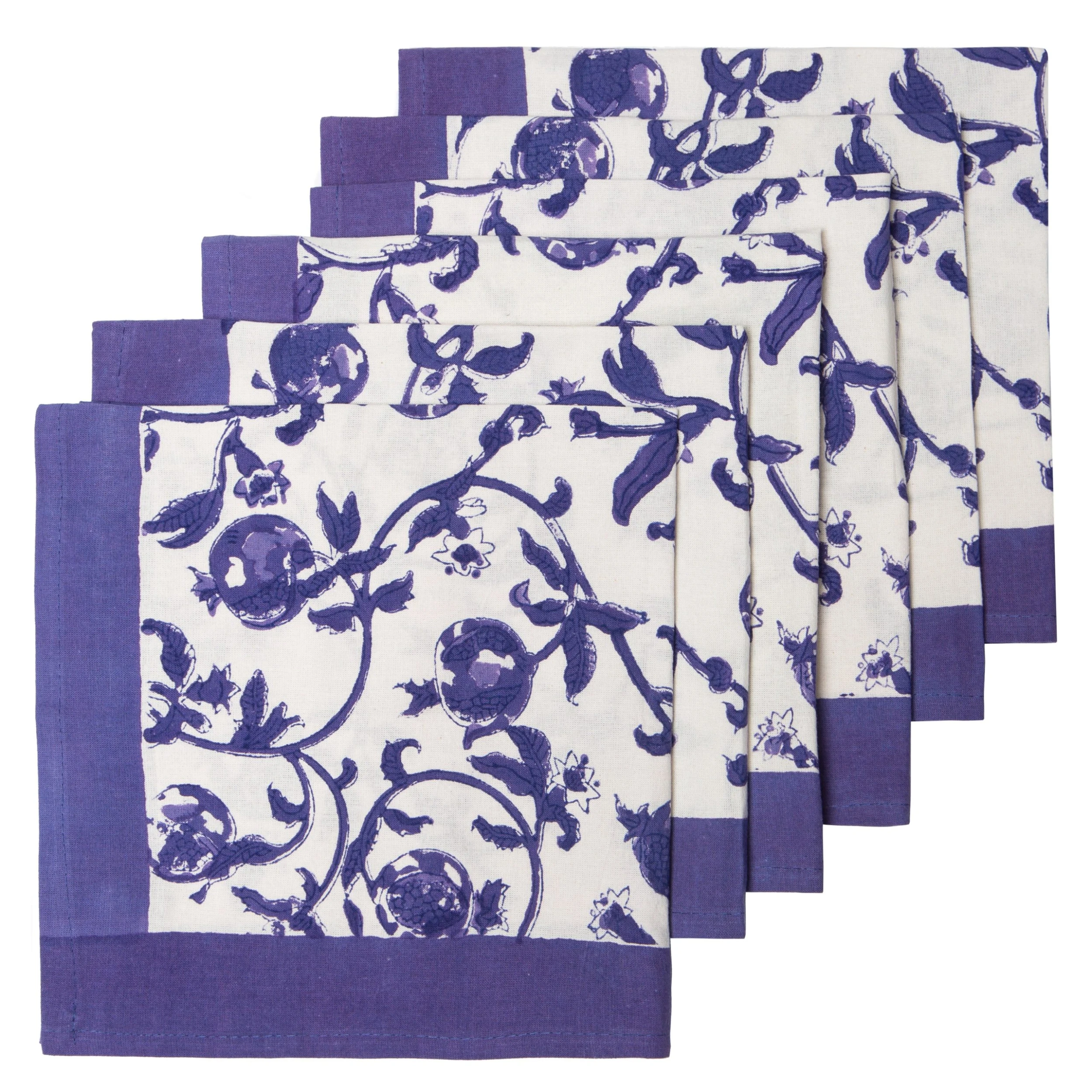 Featuring a delicately intertwined floral pattern with ultra blue-violet pomegranates atop a white background, the Granada Violet Bleu Limited Edition collection makes a joyous, richly colored complement to any table. Suitable for formal, festive, and casual events alike, this high-quality linen foregrounds a classic motif with French country styling, and has been hand-printed by skilled artisans using a time-honored technique. Our table napkins make a great way to refresh your table, adding color and vibrancy to every day or formal settings.