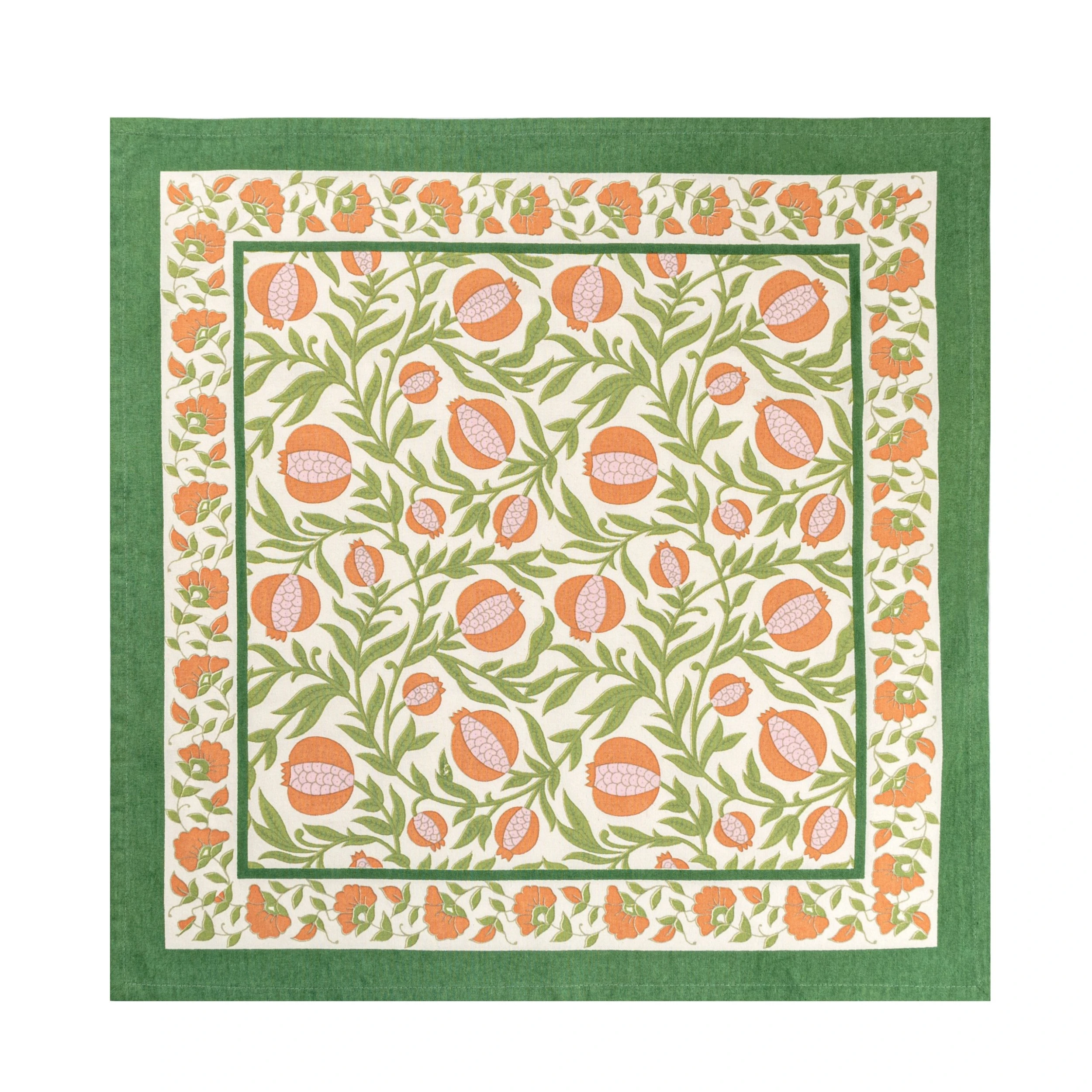 With ripe pomegranate arils and delicate floral motifs our Grenadine Orange & Green Collection is a sweet and vibrant way to brighten up your space. Whether you’re hosting a special gathering or simply enjoying a meal with loved ones this French linen will bring a touch of Provence to your table. It has been carefully handprinted by skilled artisans using a time-honored technique, resulting in a singular piece of craftsmanship.