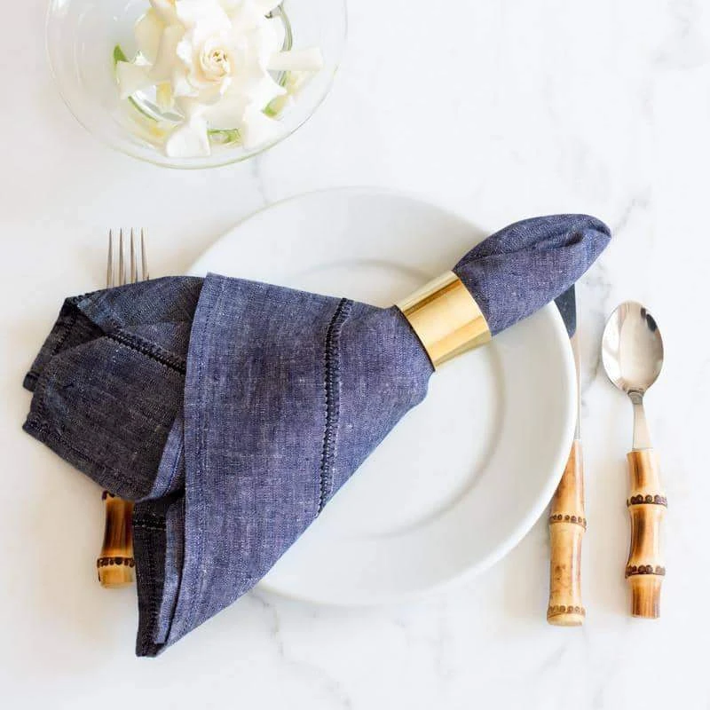 Our Linen Stitch napkins are handmade from 100% Fine Linen. Similar to our Laundered Linen Collection but differing slightly in the finished style, known as Chambray. A term that refers to the result of weaving a lightweight woven fabric consisting of white yarns filling out the weft and colored yarns lining the warp. The linen is also stonewashed for a softer texture creating a look that is leisurely and effortless.