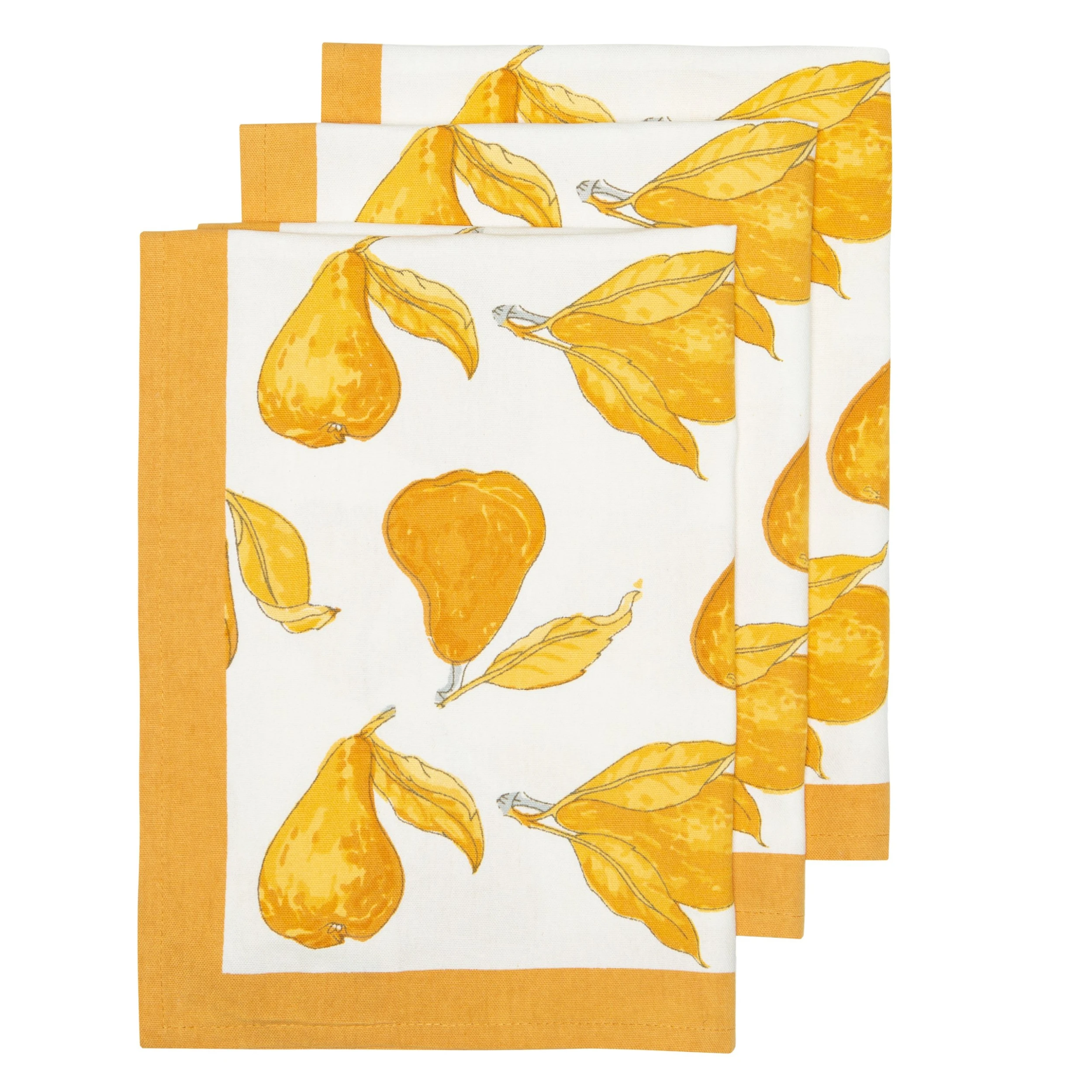 Orchard Pear Tea Towels Mustard & Grey, Set Of 3
