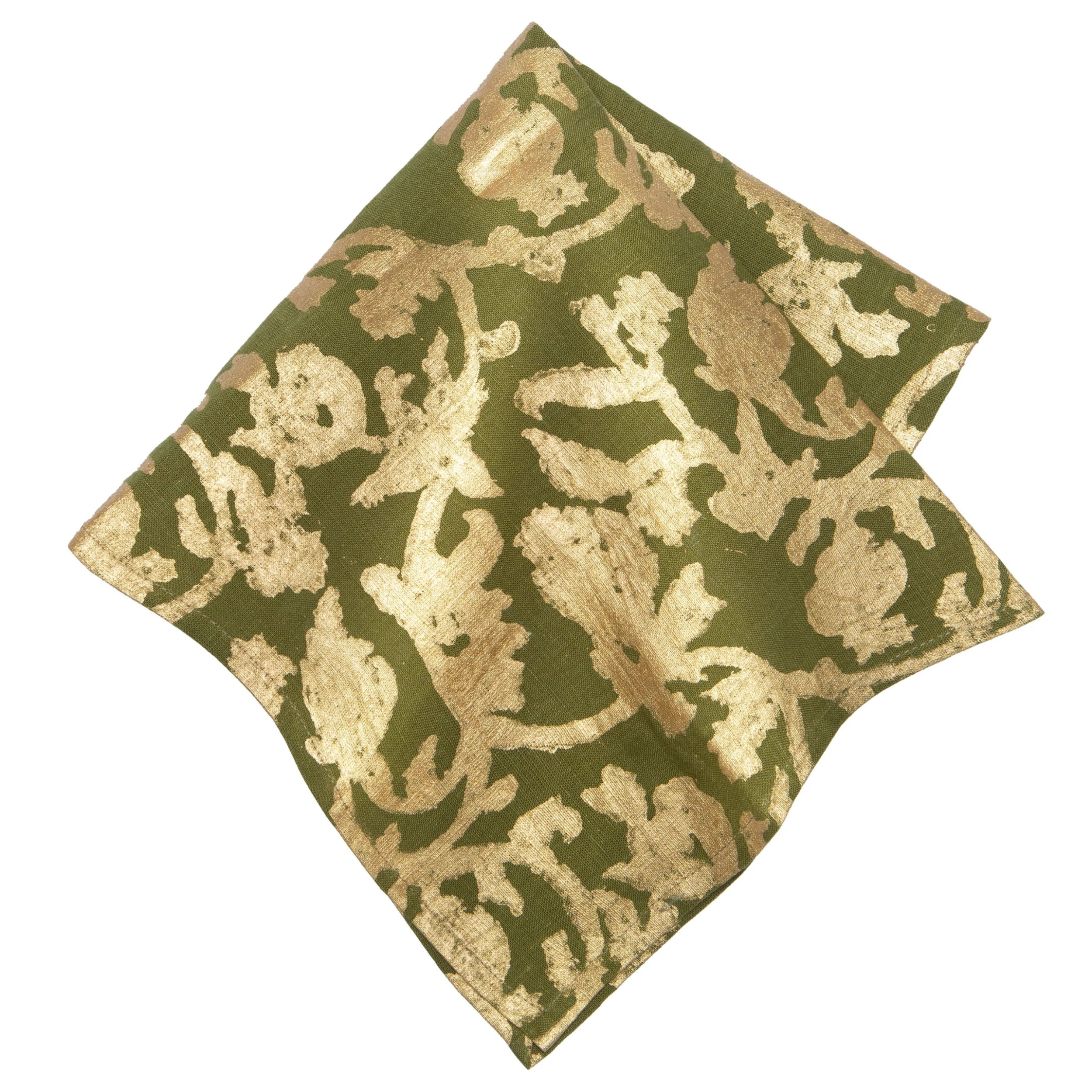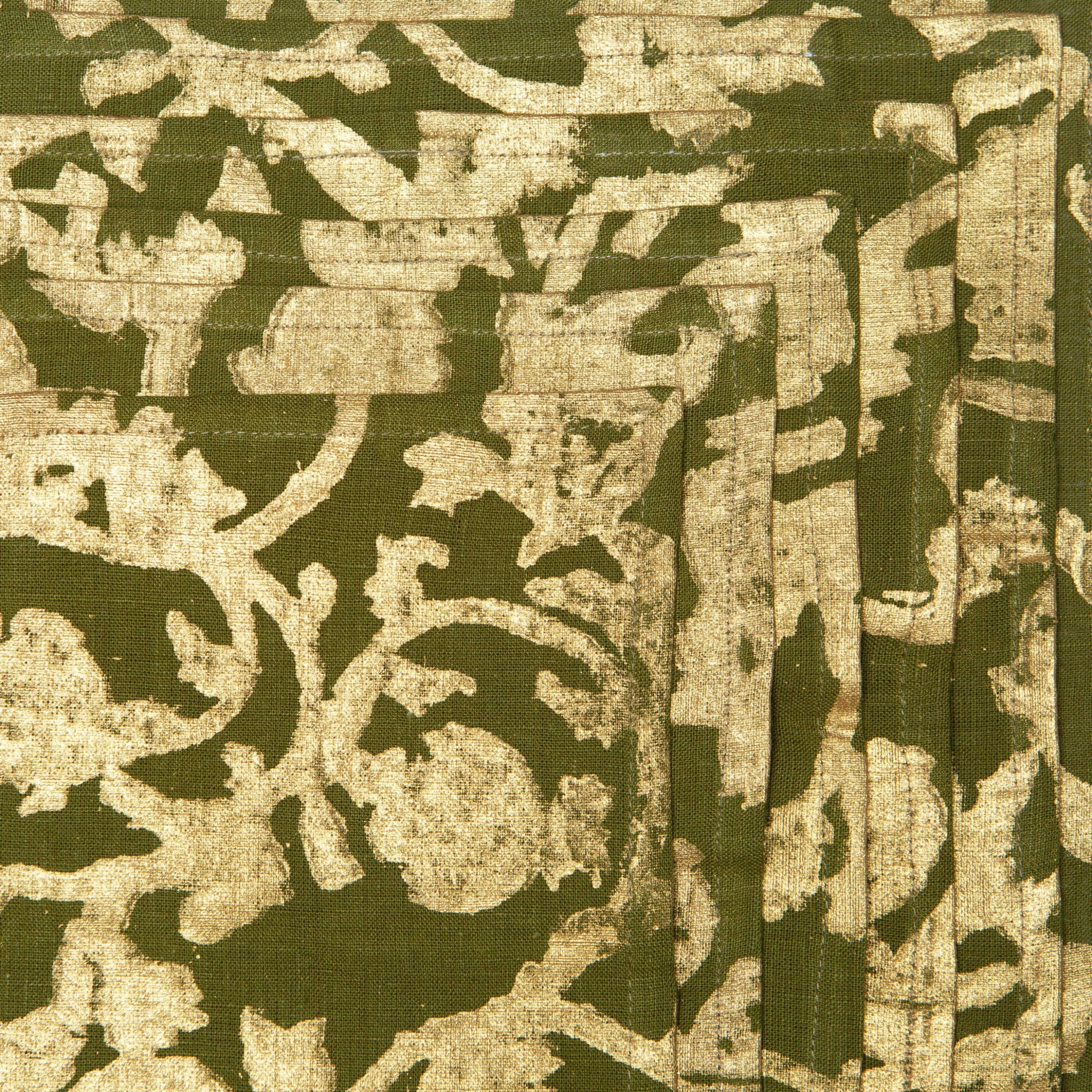 Named for the famed French village of Saint-Rémy, this design draws the eye into a field of elegantly entwined botanicals rendered in rich color, with a look to the joyous celebration of Christmas. Couleur Nature is proud to present this as one of our highest-quality products, printed on 100% Belgian linen. Each piece in the Saint-Rémy d’Or Collection is hand-printed by skilled artisans using a time-honored technique.