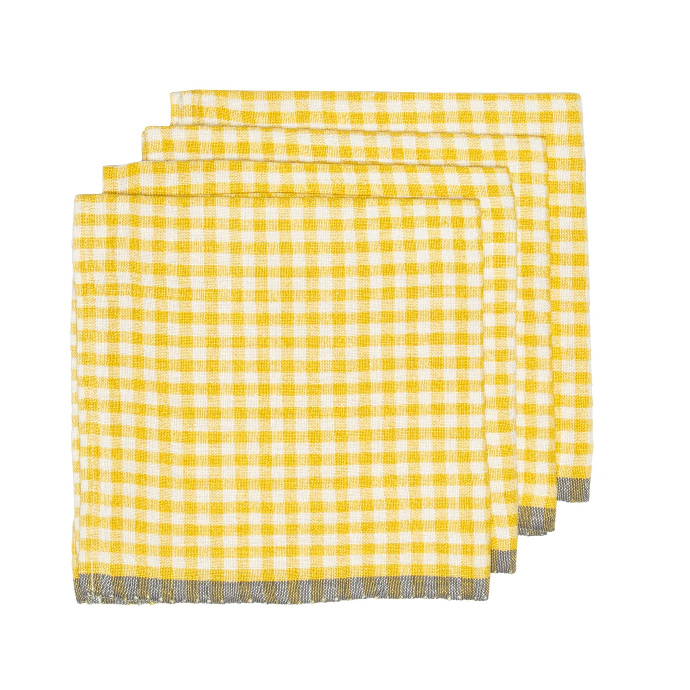 Two-Tone Gingham Napkins Dijon & Grey, Set Of 4