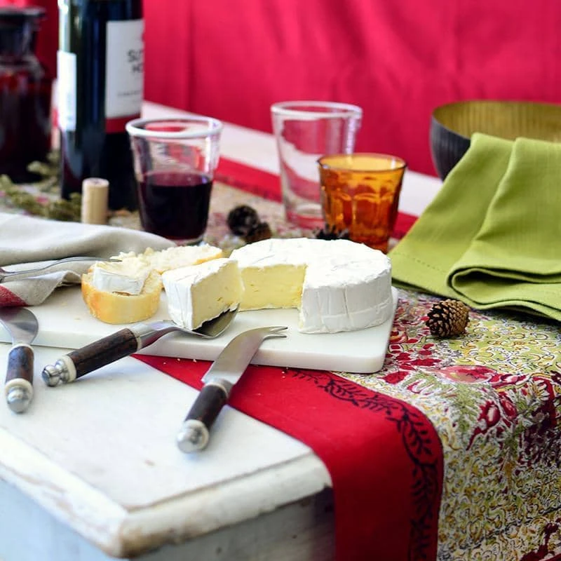 The Winter Garden Wreath collection’s luxurious colors adorn a table with plenty and extravagance. Its sumptuous table linens, runners and napkins are perfect for the holidays and special occasions. Fine French table linens, hand-printed. Designed by Bruno Lamy exclusively for Couleur Nature.
