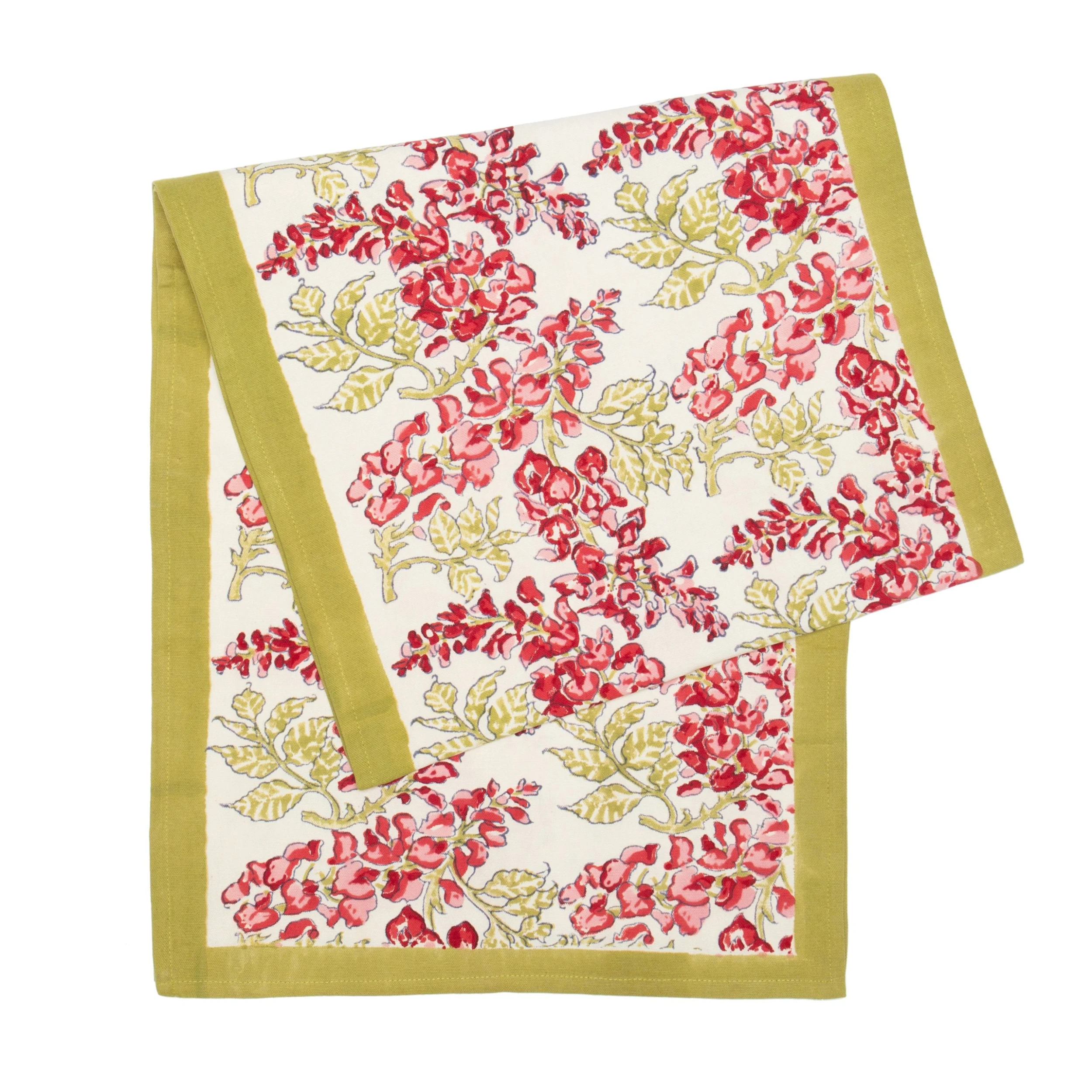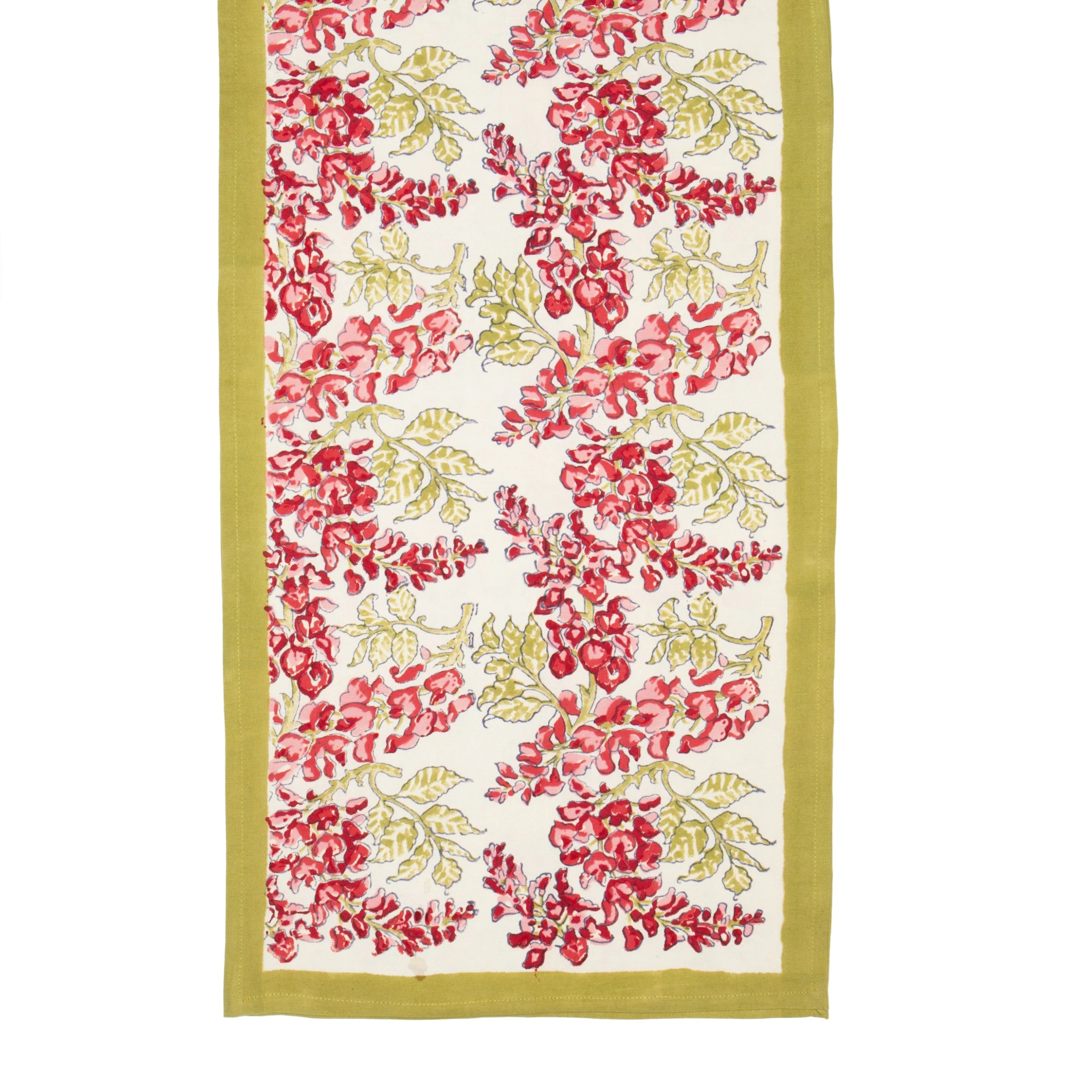 The Wisteria collection features olive green vines with delicate pendant-like blooms. The ivory background with it’s cascading red and pink-tinged flowers create a beautiful landscape for your delicacies. Dine-in style amidst memories of gorgeously perfumed flower clusters. This elegant piece is a tasteful essential in every linen collection!